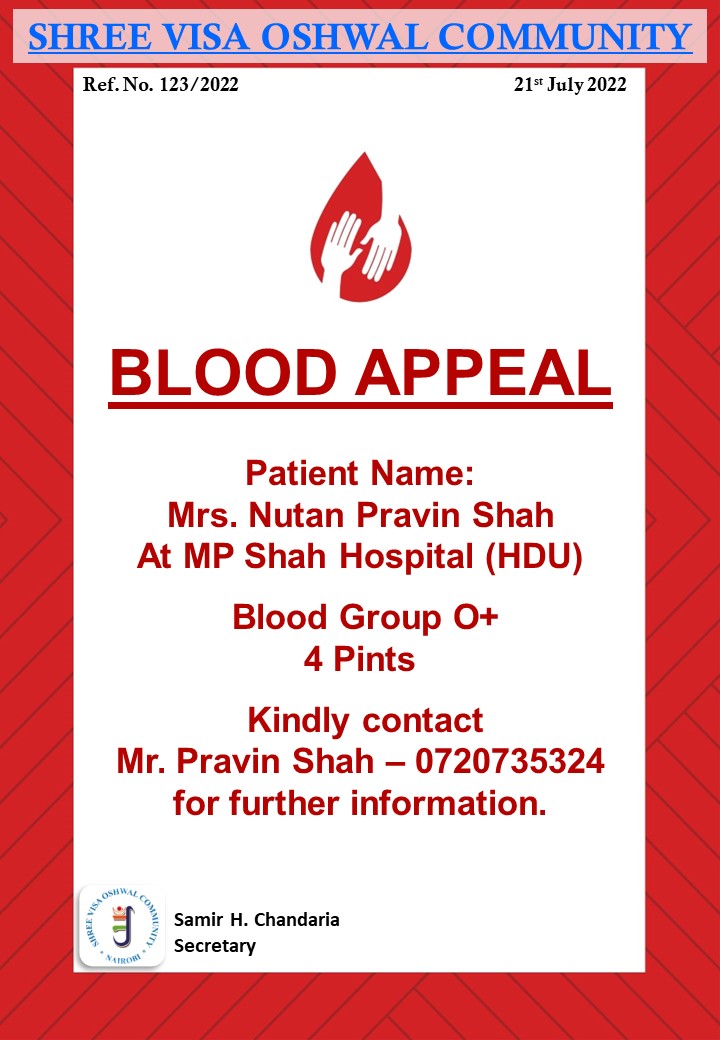 Blood Appeal - Mrs. Nutan Pravin Shah