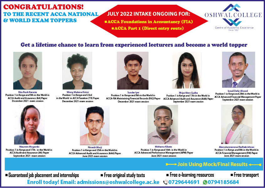Oshwal College - ACCA National & World Exam Topper...