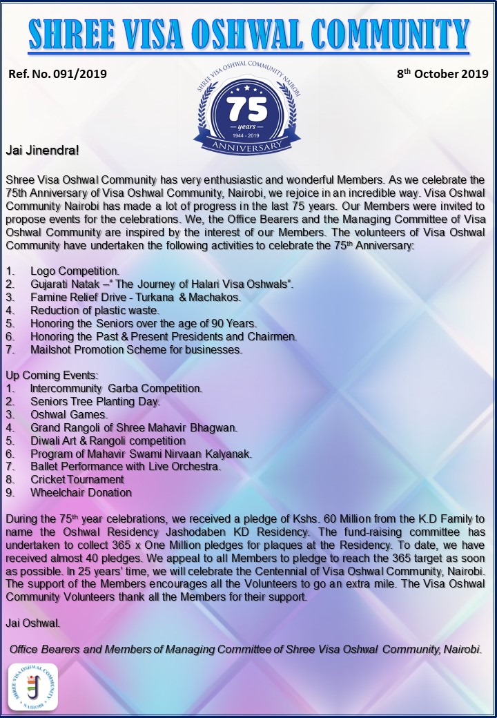 Activities for the 75 Years of Shree Visa Oshwal C...