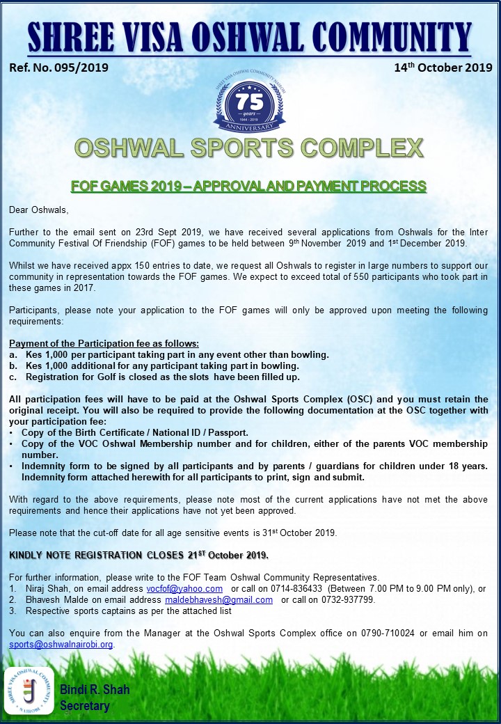Oshwal Sports Complex - FOF Games Approval & Payme...