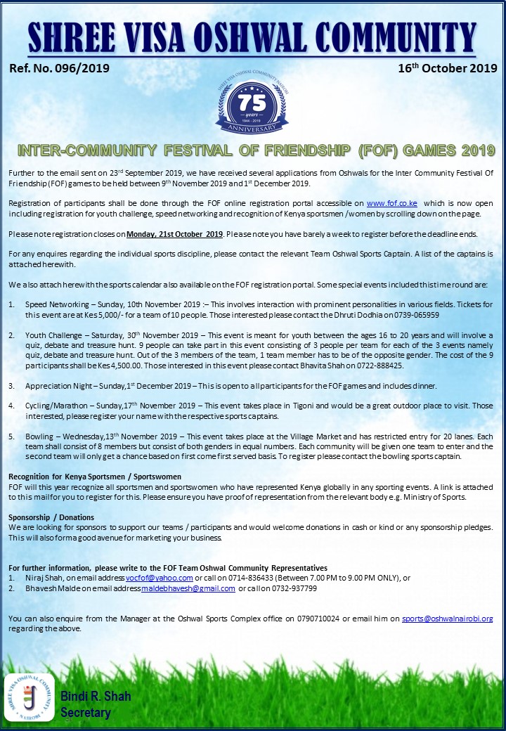 Oshwal Sports Complex - FOF Games 2019 Approval &...