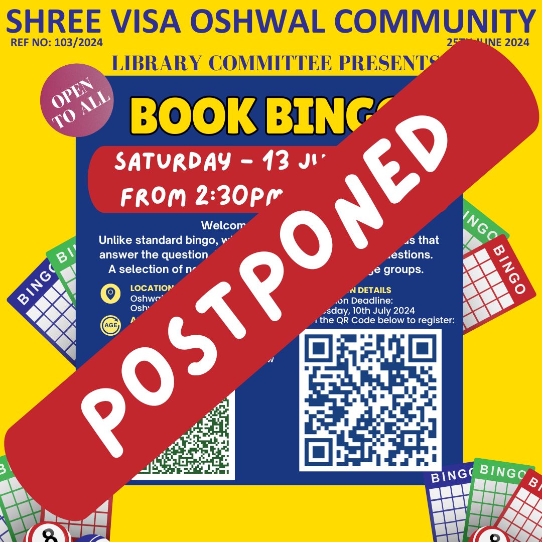 Postponed Book Bingo by Library Committee