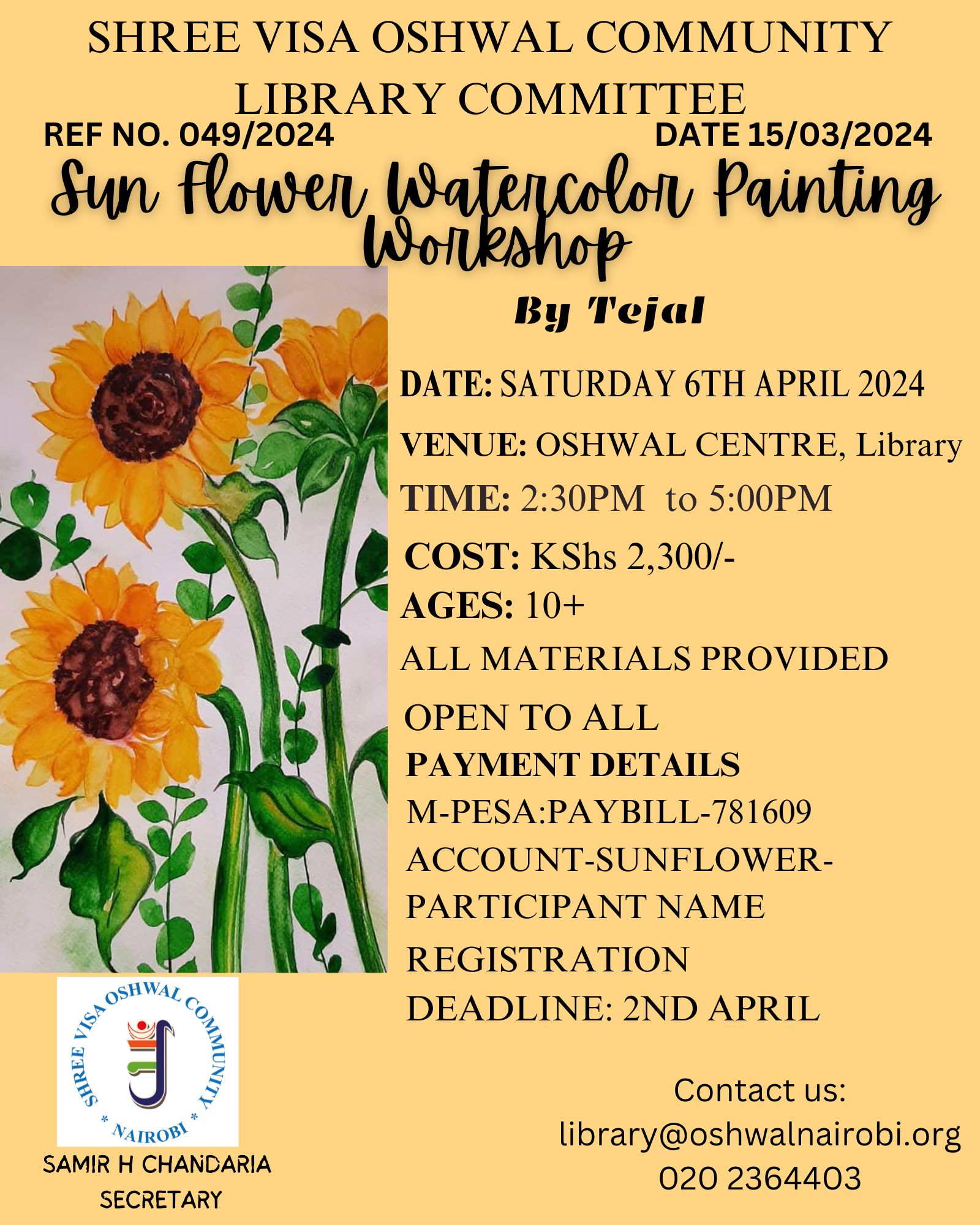 Library Committee - Sun Flower Watercolor Painting...