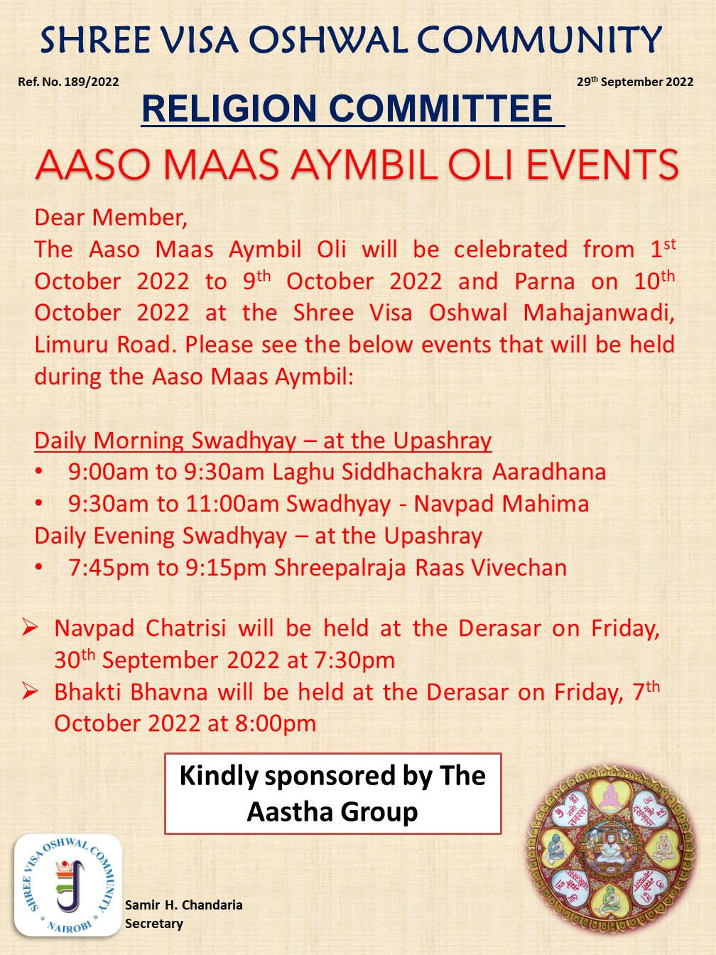Religion Committee - Aaso Maas Aymbil Oli Events